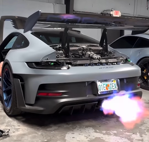 Roar and flame makes the stage2 992 GT3RS like a fighter jet passby road !